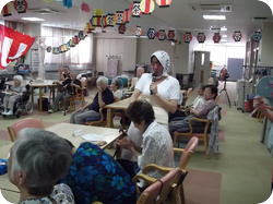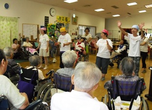 メンバーの方がおりデイサービスは皆さまのダンスやドラムで盛り上がりました。