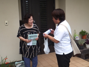 講話の際には、まず介護者であるご主人の恒男様に病気の説明や療養の経過をお話しいただきました。