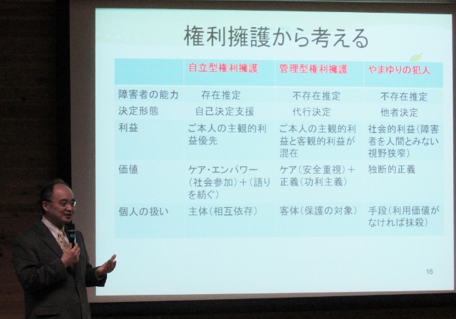 まず、津久井やまゆり園の事件を説明。そこから、権利擁護とはなにか、を丁寧に説明してくれました。