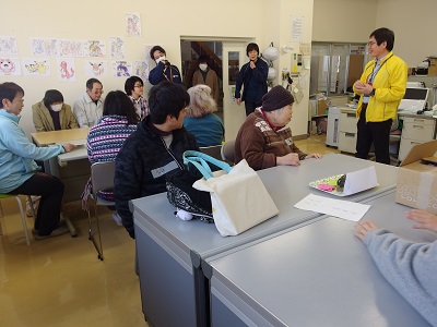 春日居ふれあい工房の利用者さんも一緒になって、仕上げをしていきます。