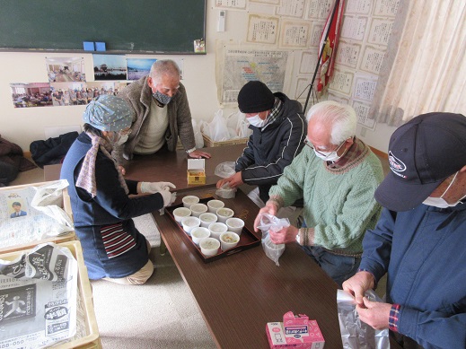 また、住民の方からいただいた正月飾りや野菜なども配らせていただきました。