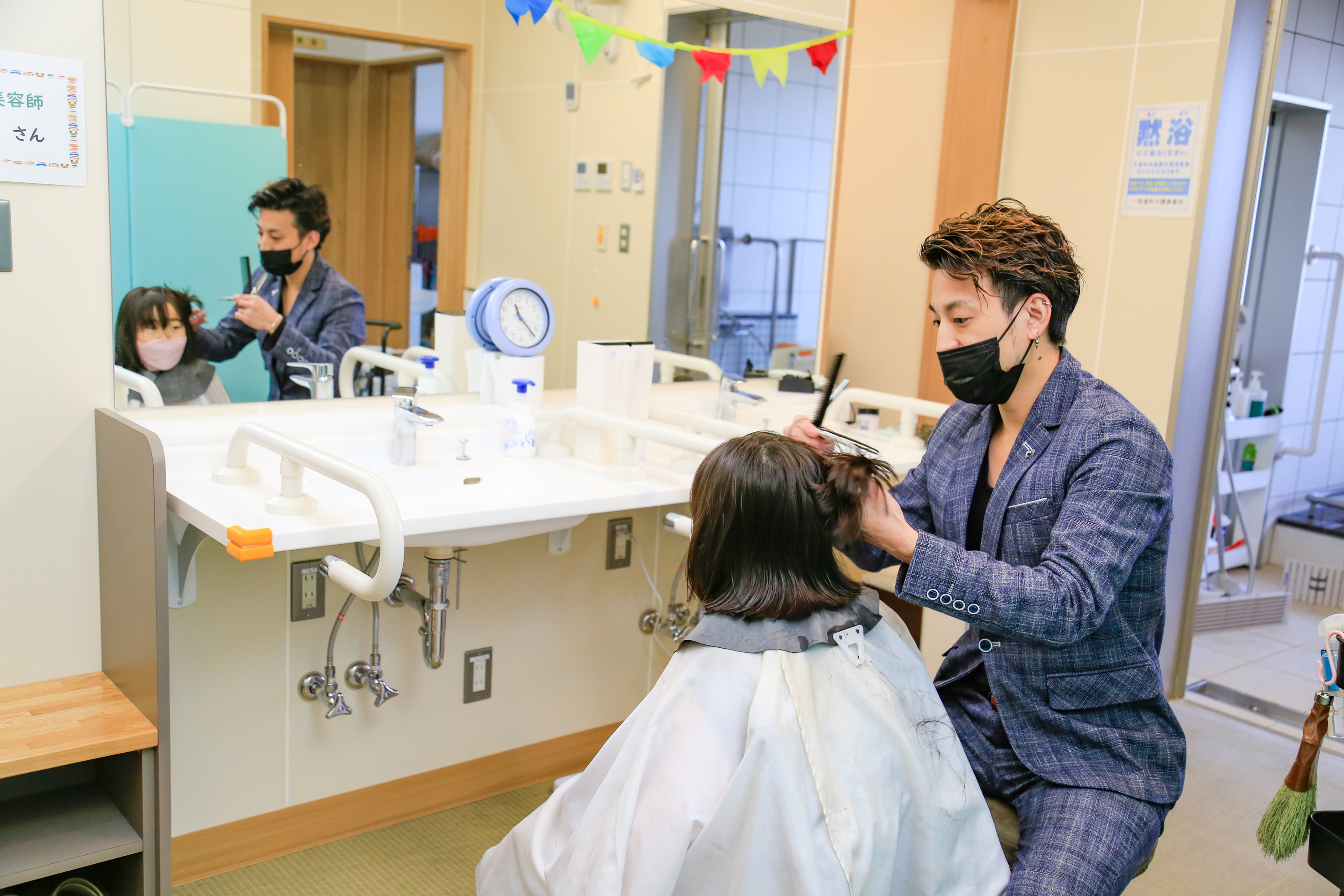 髪の毛をスッキリ、きれいにかわいく、かっこよくしてお正月を迎えるためボランティアで美容師さんに二人来ていただきました。