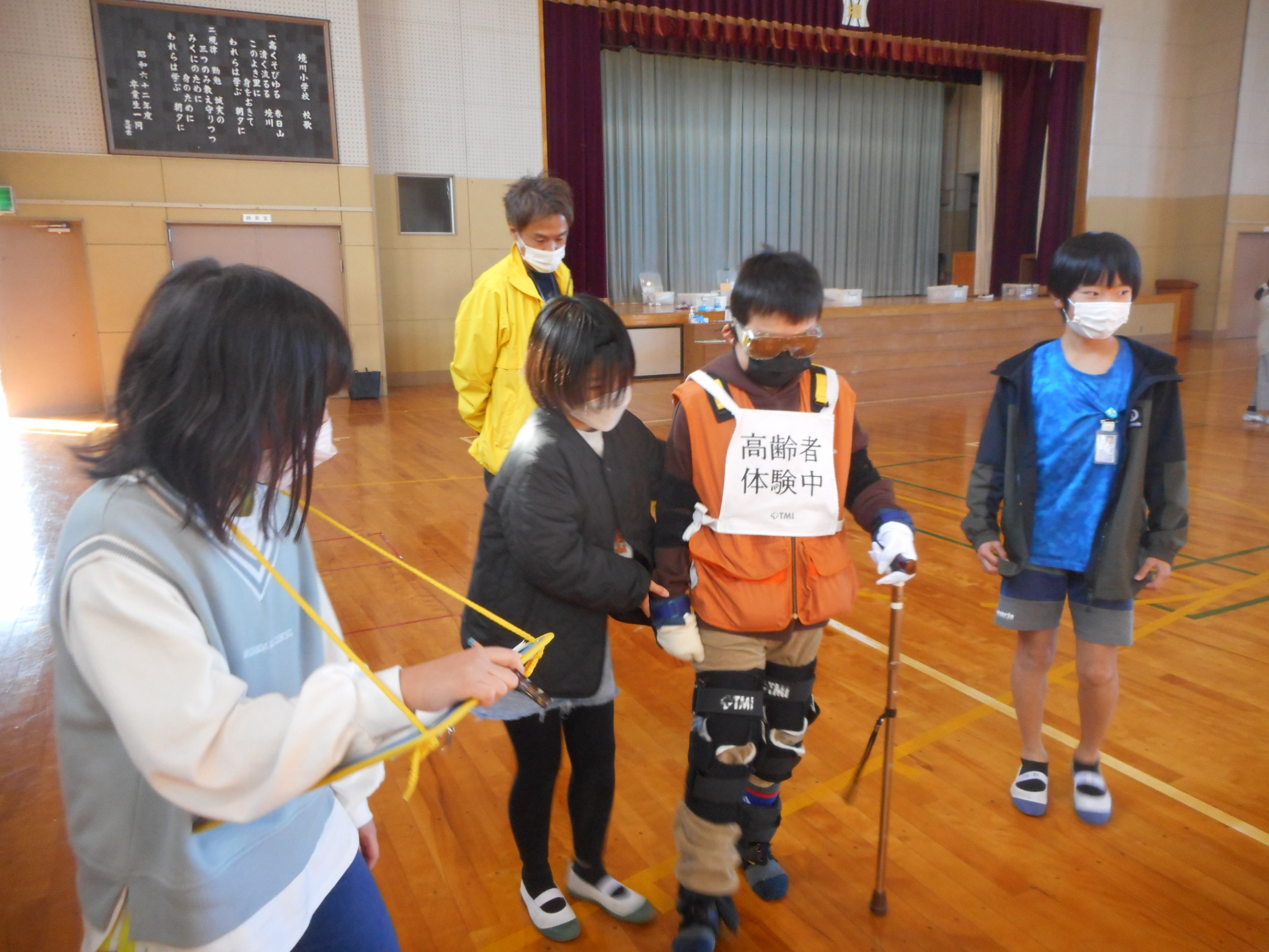 ▲御坂シニアクラブのサンタさんがお子さんをエスコート▲