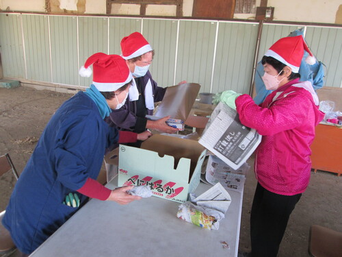 ▲女衆サンタさんは、さつまいもの準備に大忙し▲
