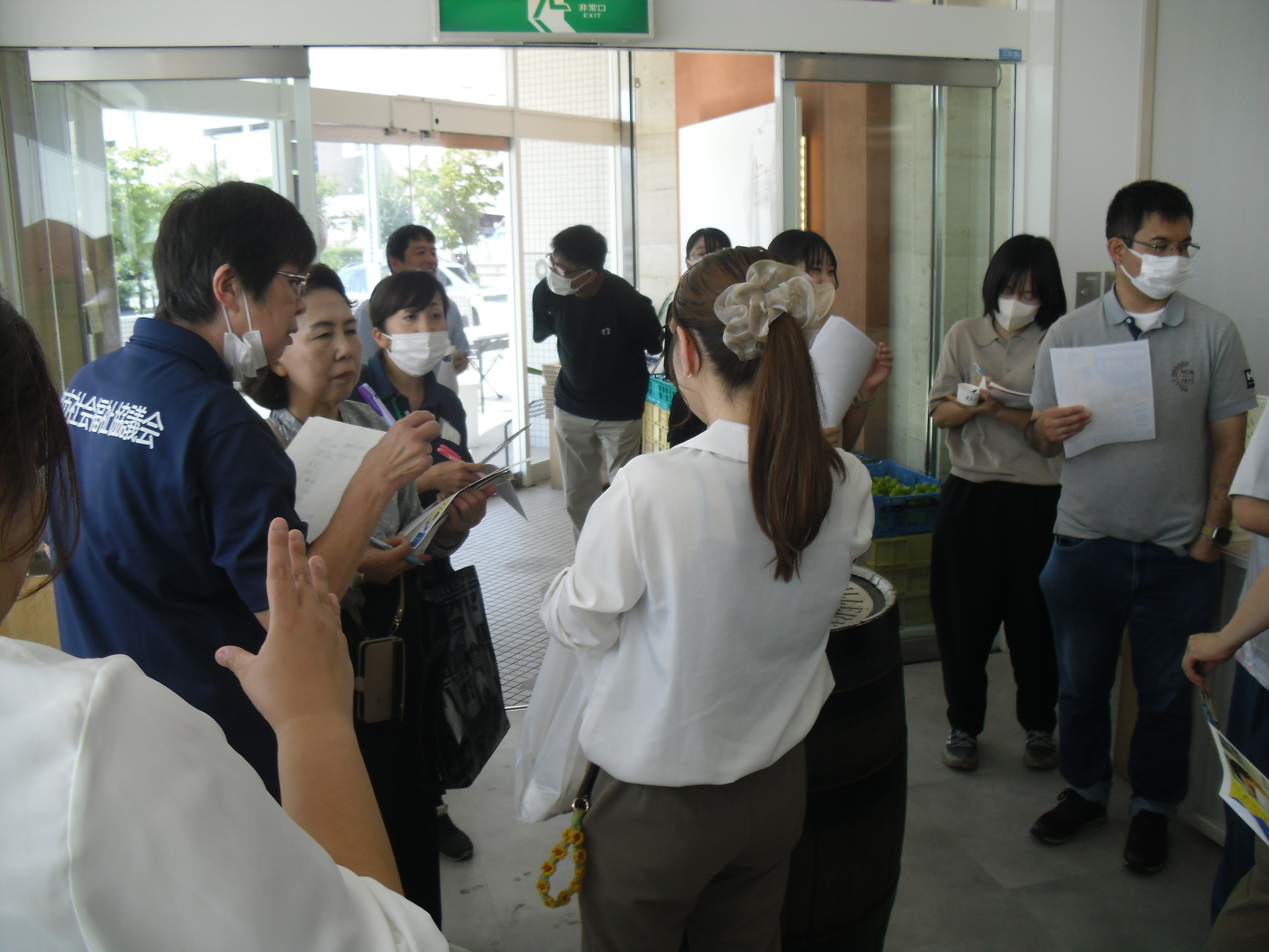 場所を製造オフィスから、5月にオープンしたばかりの石和温泉駅前の『nouto工場直売所』に移動し見学を続けます。