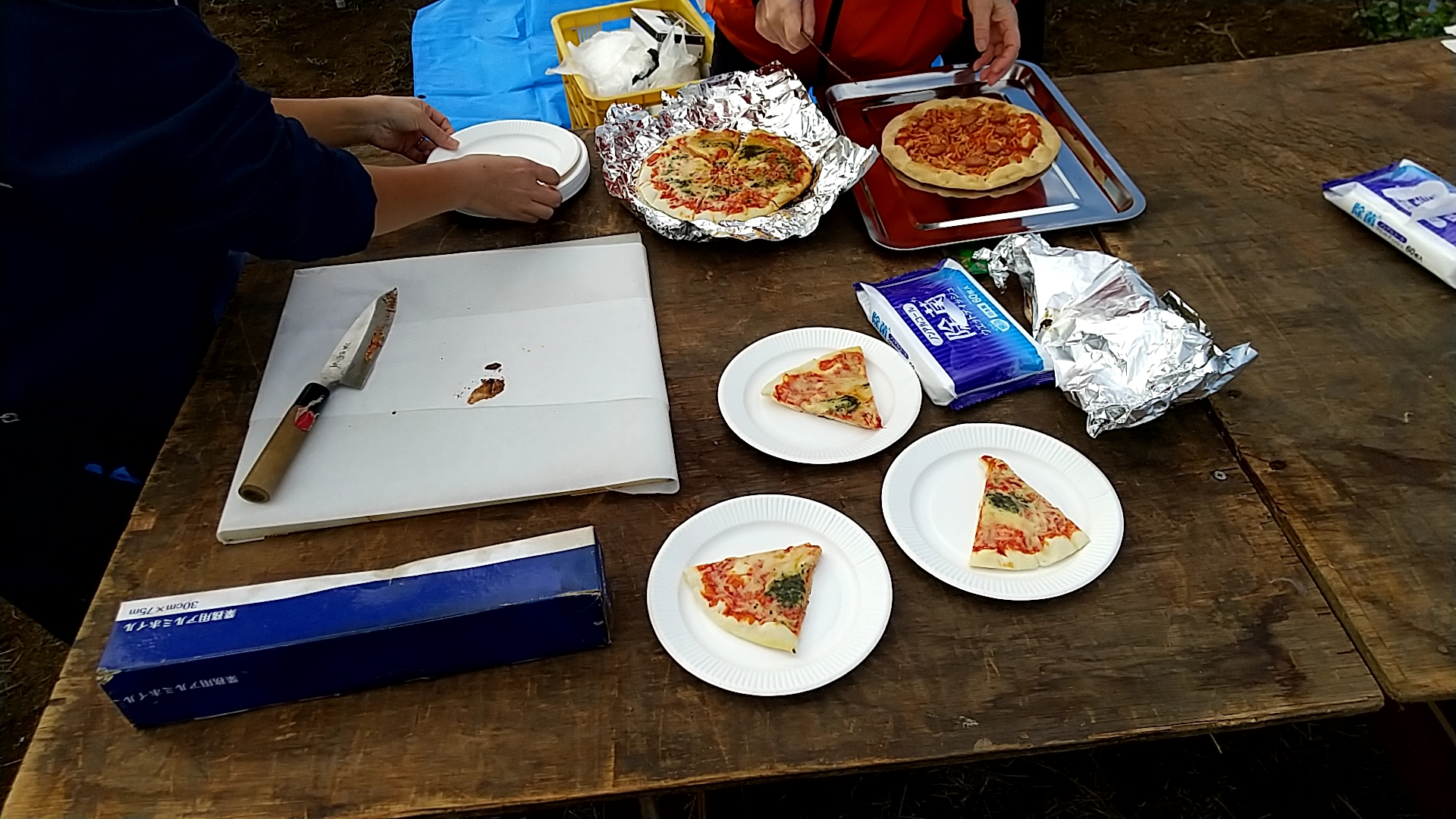 焼き芋はなかなか焼けないので、先にピザで小腹を満たします。