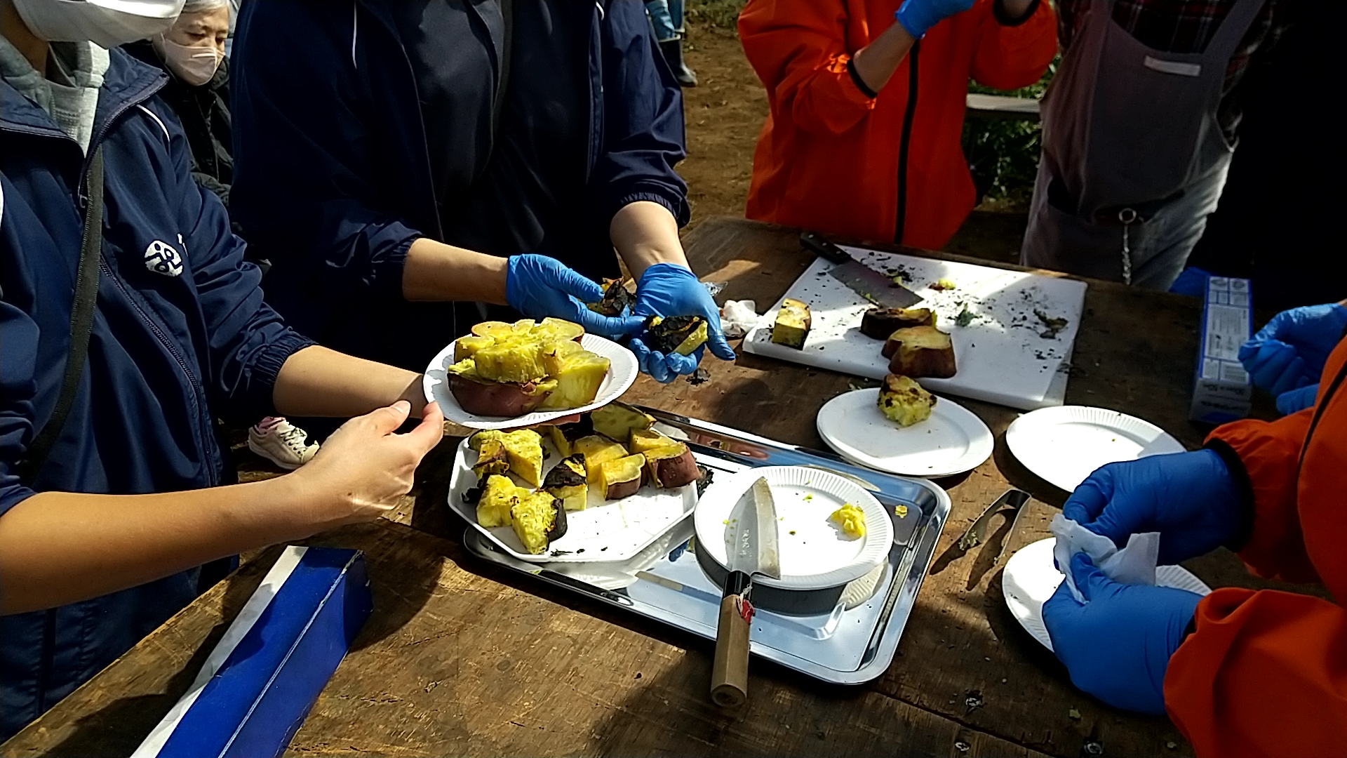 やっと出来上がった焼き芋!!みんなでいただきまーーす!!