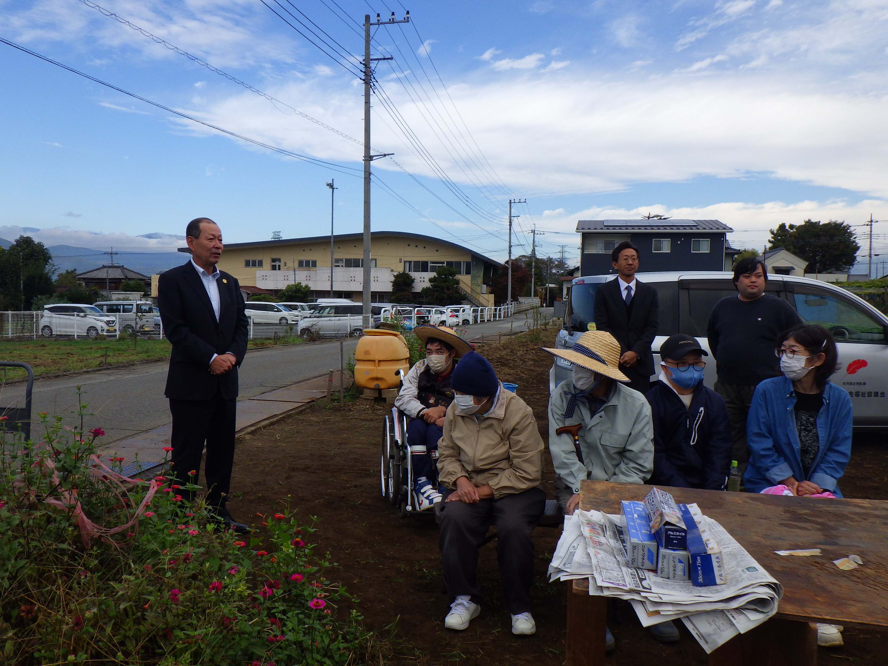 支援センターでは障がい者の社会参加・健康増進・交流の機会等を提供することを目的に、毎週木曜日にボランティアさんや民生委員さんの協力のもと、借りている八代の畑で「農作業体験」を行っています。