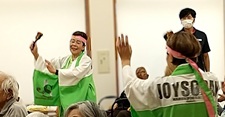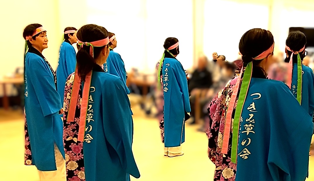 社協のデイサービスではこの時期に敬老会を開催しています。今回は石和の通所介護事業所にて、「じょいそーらん月見草の会」の皆さんが踊りを披露するとのこと。