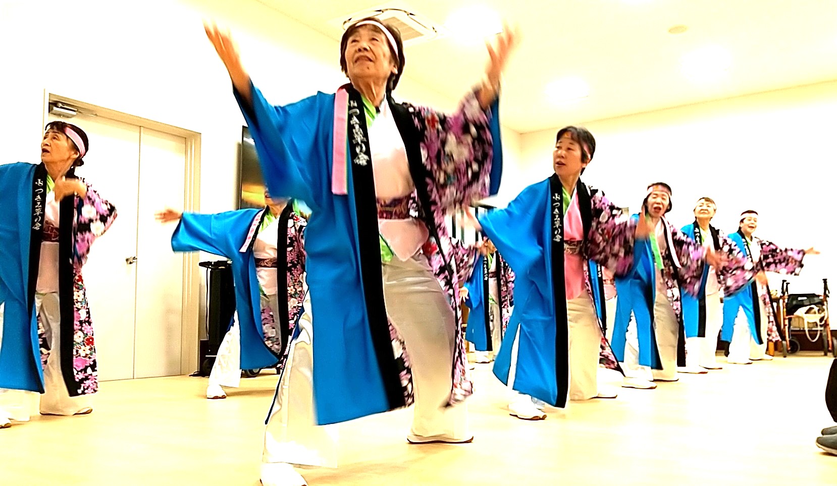 まずは青い、揃いの法被にてソーラン節を披露していただきました。つきみ草の会の名前が入った法被です。