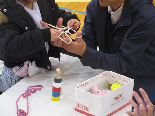 けん玉は子どもたちにとって少し難しかったようですが、ボランティアの皆さんに教わりながら一生懸命取り組む姿が印象的でした。