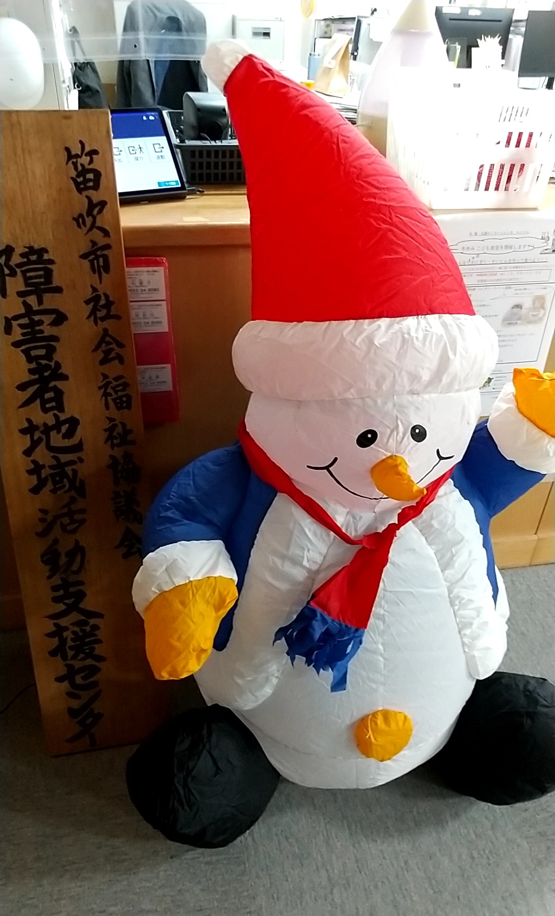 支援センターふえふきも、玄関でスノーマンが出迎えしてくれています。待っていますね。