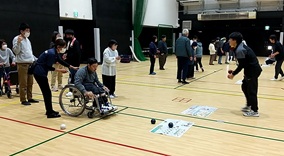1月14日(水)、甲府のパラスポーツセンターで、スマイル生活介護、八代育美会・春日居ふれあい工房の3型の利用者さんとの交流を目的にボッチャを行いました