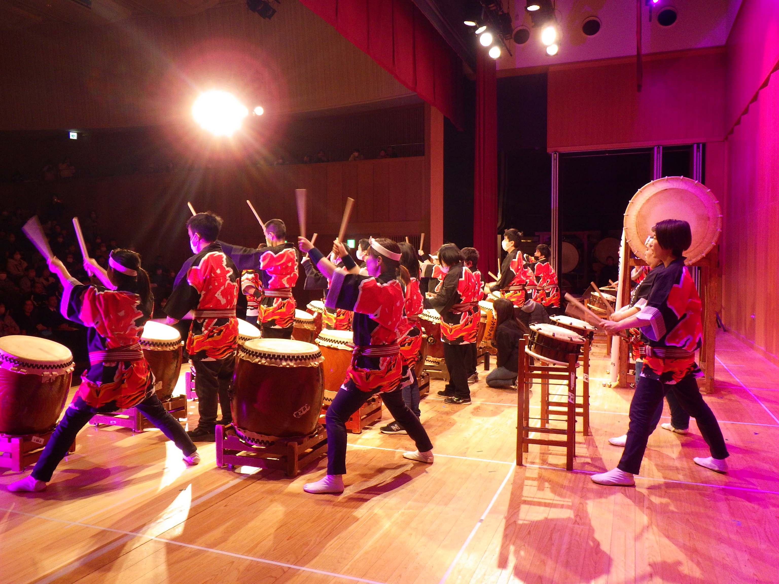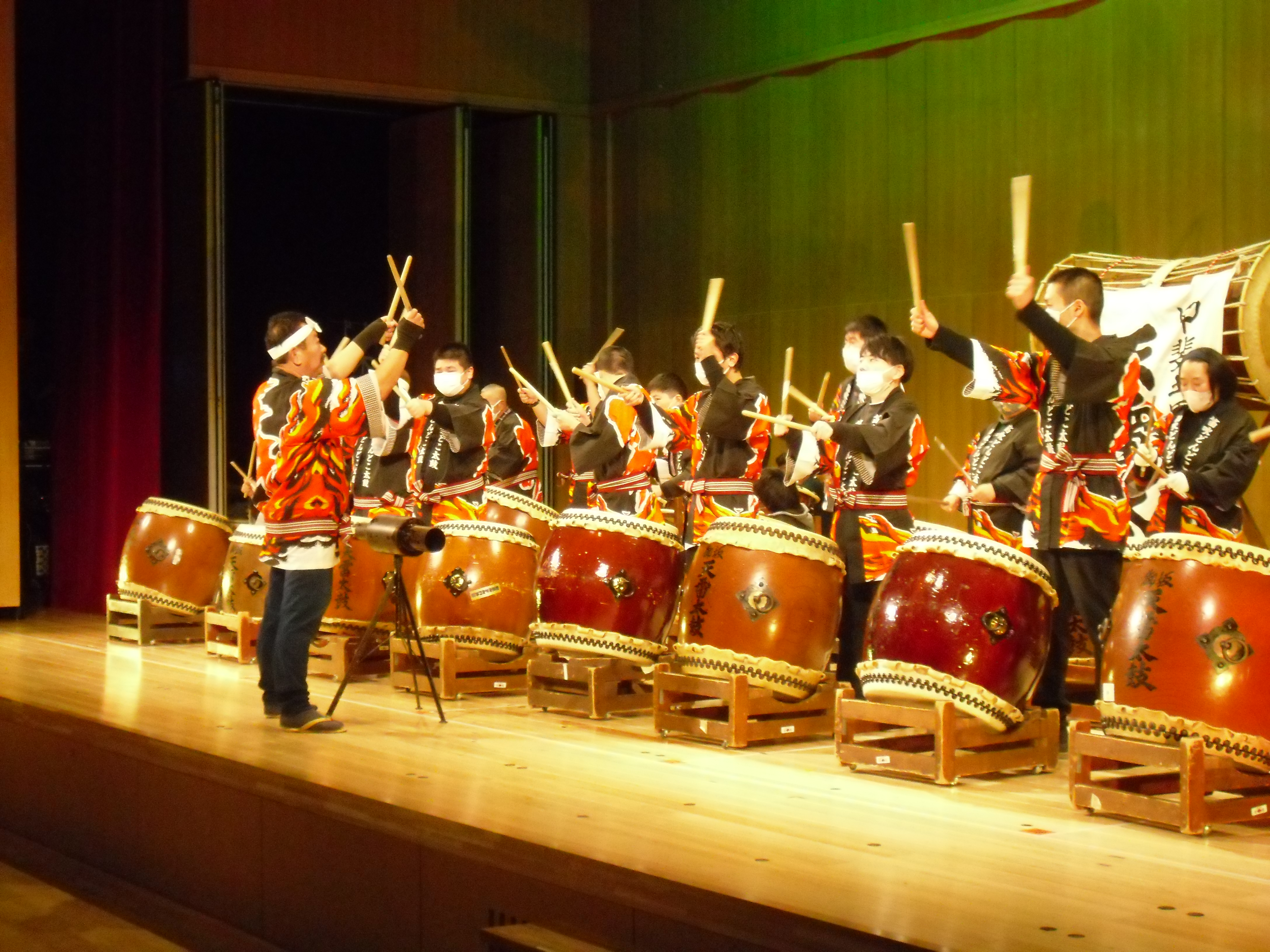 この日もいつもの『笛吹どんどこ太鼓』らしく、「どんどこ太鼓」「わっしょい!!」「絆」の3曲を、大舞台でも活き活きと元気に演奏を披露することができました。