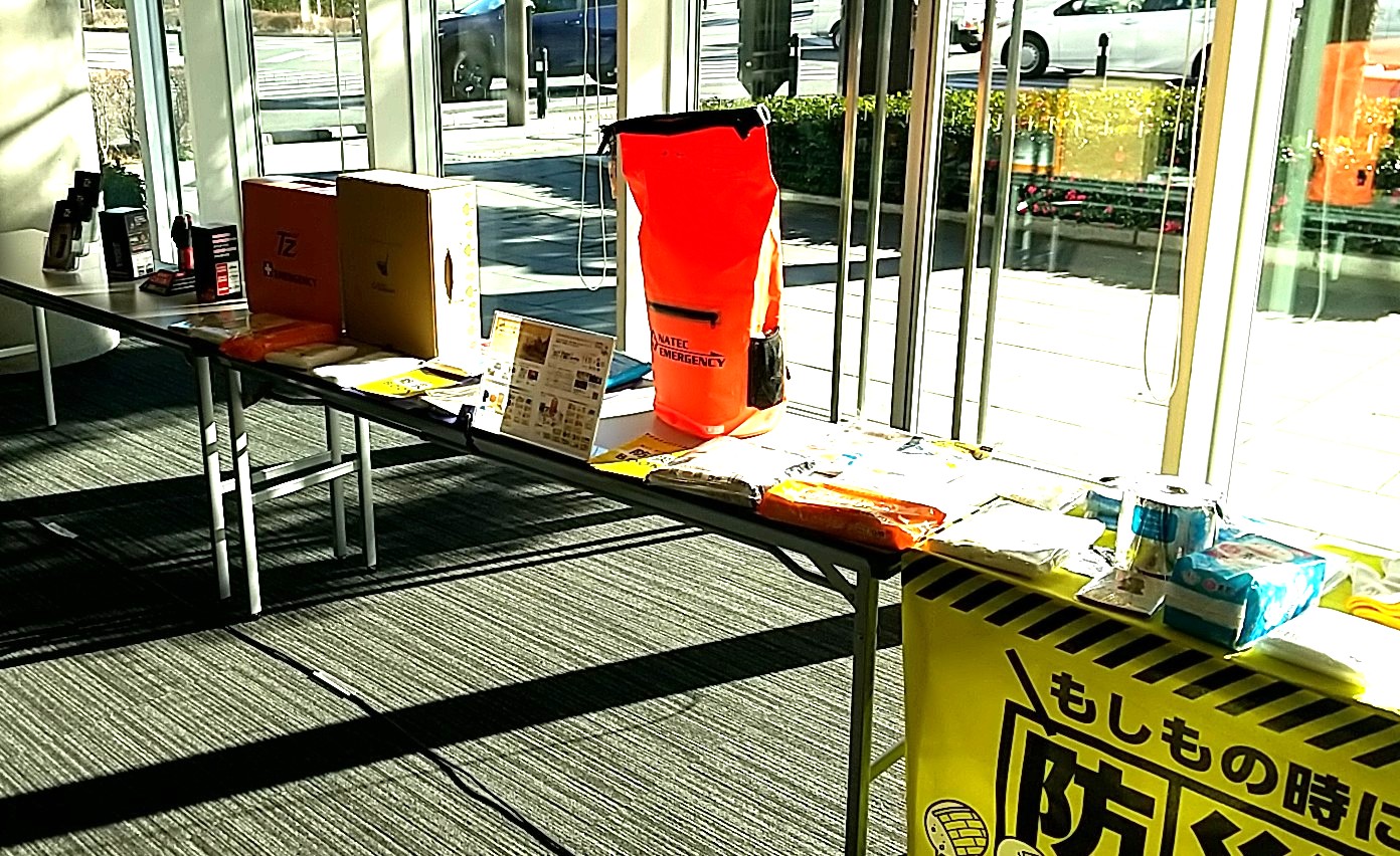 トヨタカローラ山梨では、被災地でも単体で電源確保となりうる自動車の紹介や、コンパクトで扱いやすい発電機の紹介、店舗で用意している災害対応グッズの展示など。また店舗も一時的な避難場所として開放していくなど、災害時支援の拠点のひとつとなることも提供していただきました。