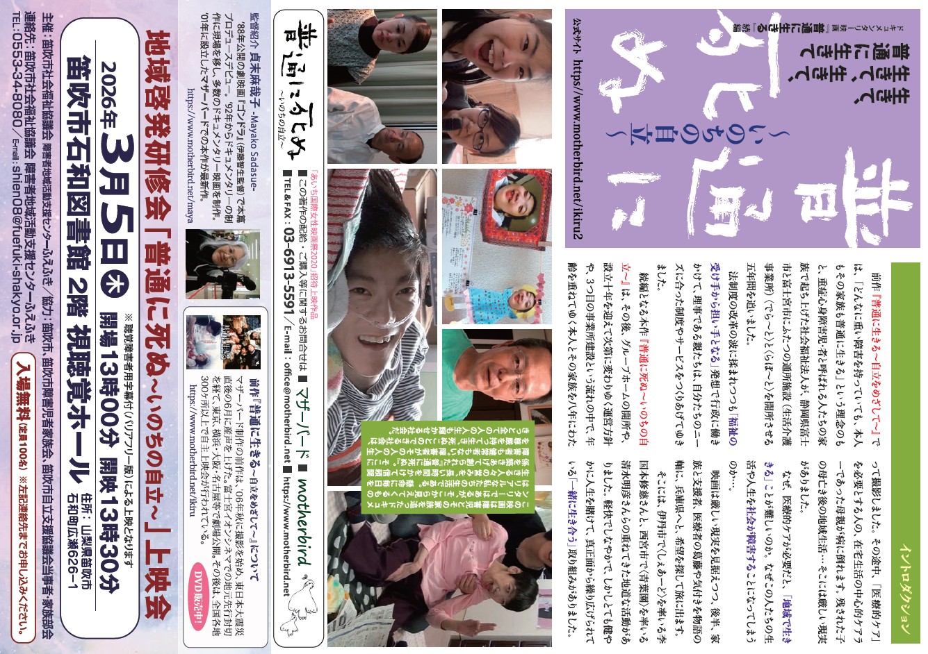 重い障害を持つ人々とその家族が、地域でどのように「普通に生き、死んでいくか」というテーマを探求したドキュメンタリー映画の上映会を開催します。