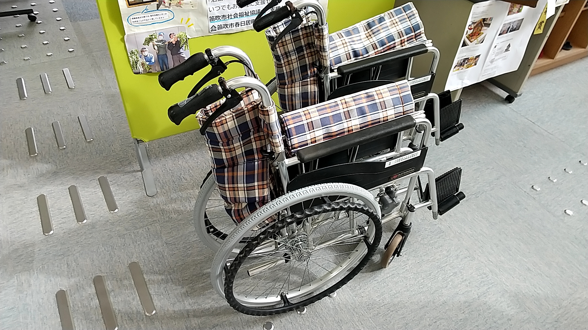 笛吹社協の各地域事務所では、一時的に車いすを必要としている市民の皆さんへ、車いすの貸し出しを行っています。この事業は、支援センターふえふきの事業である福祉機器リサイクル事業を元にした事業となっています。