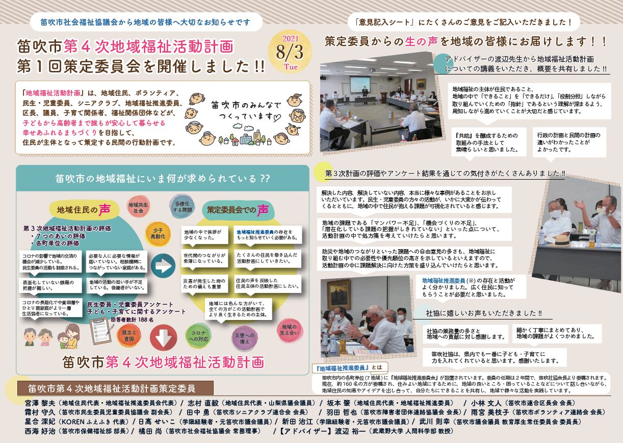 現在、笛吹社協では第5次地域福祉活動計画の策定委員を募集しています